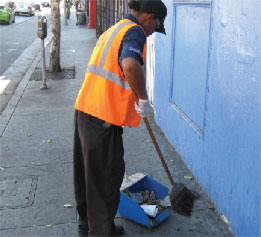 Last quarter, the sidewalk maintenance team collected 3,047 bags of trash (70,081 lbs.), dispensed approximately 4,000 doggie bags, picked up 5 bulk items, and removed 181 graffiti tags on sidewalk pots, poles, and news racks. The crew is out every Monday and Thursday sweeping the sidewalks, picking up trash, clearing gutters and painting out graffiti from street poles, news racks, and flower planters. The team empties 59 trash cans throughout the District due to the City's reduced efforts which had led to an overflowing of the cans.