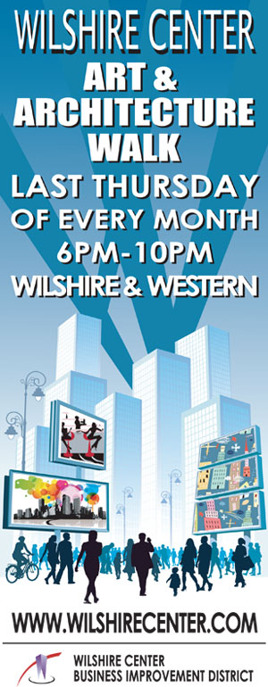 Wilshire Center Art and Architecture Walk is a monthly celebration of sustainable urban living showcasing historic architecture, galleries, artists, photography, restaurants, bars, shops, and businesses located in Wilshire Center. Enjoy a self-guided walking tour of one of Los Angeles' most densely populated, pedestrian friendly, public transportation facilitated, and architecturally rich neighborhoods.
